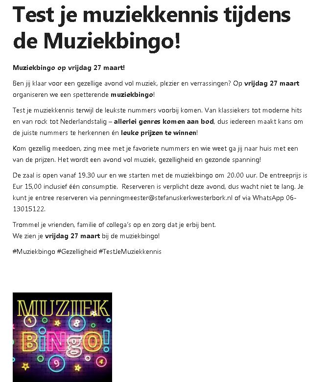 Muziekbingo 27 maart 2026